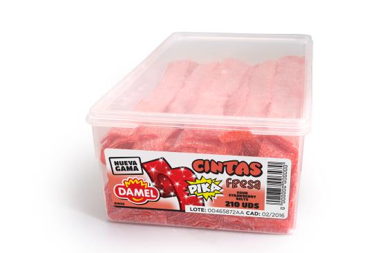 De enige echte zure matten van Damel met aardbeismaak in een bak van 210 stuks! Voor de echte liefhebber van zure matten.