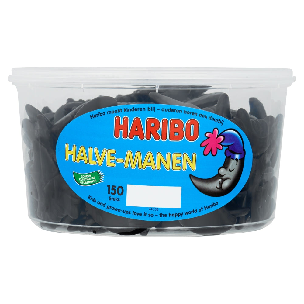 | De Haribo Halve Manen Drop zijn heerlijke zoete dropjes in de vorm van een halve maan. |