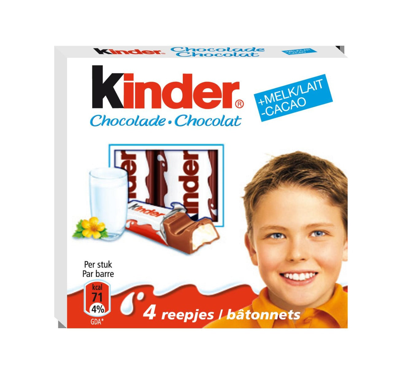 De bekende smaak van Kinder chocolade, nu verpakt per 4 kleine reepjes.