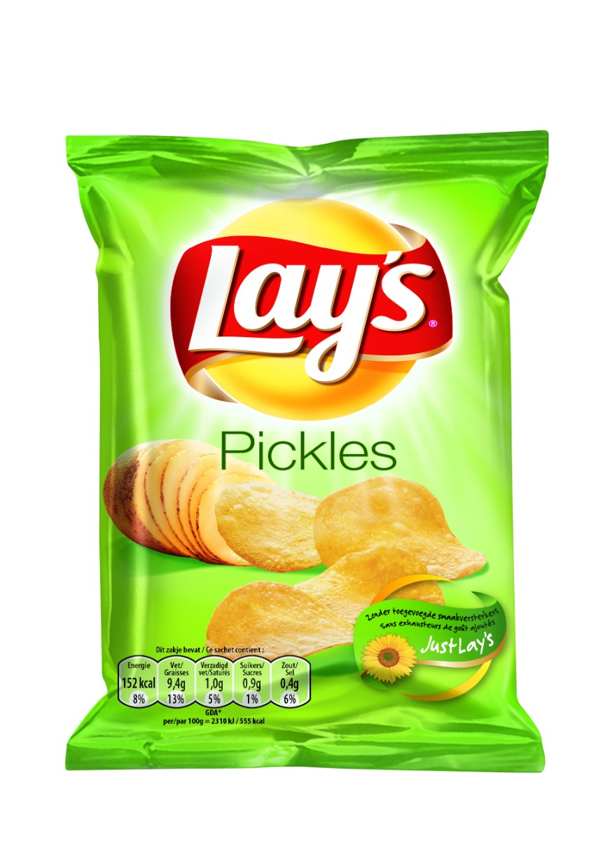Lays aardappelchips in de smaak pickles, een klassieker in het chips schap! Handig verpakt in kleine zakjes van 40 gram. Deze doos bevat 20 zakjes van 40 gram.