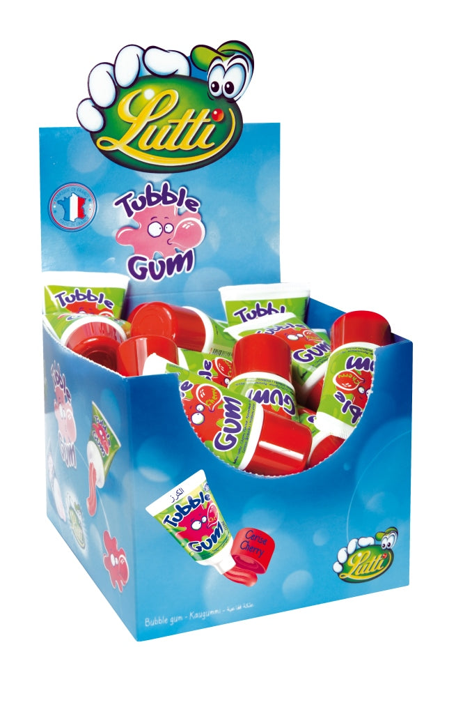 35 gram Tubblegum van Lutti. Deze jelly van Lutti heeft een heerlijke kersen smaak.