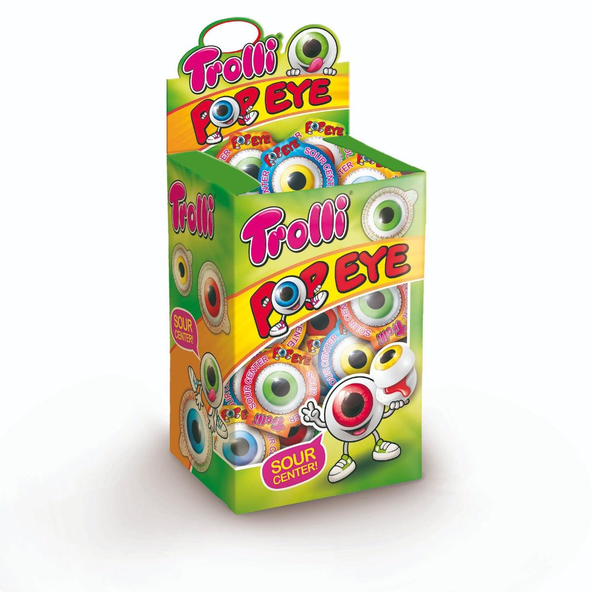 Trolli pop eye is een perfrecte halloween tractatie om met halloween uit te delen, gevuld met een zure vulling.