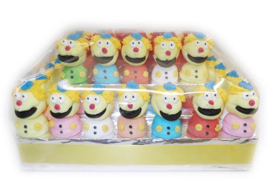 Vrolijke figuren in leuke kleuren en verschillende smaken maken de taart tot een plaatje.